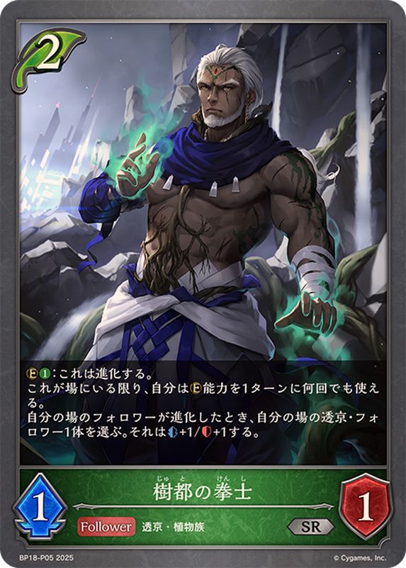 自分の場のフォロワーが進化したとき、自分の場の透京・フォロワー1体を選ぶ。それは+1/+1する。
